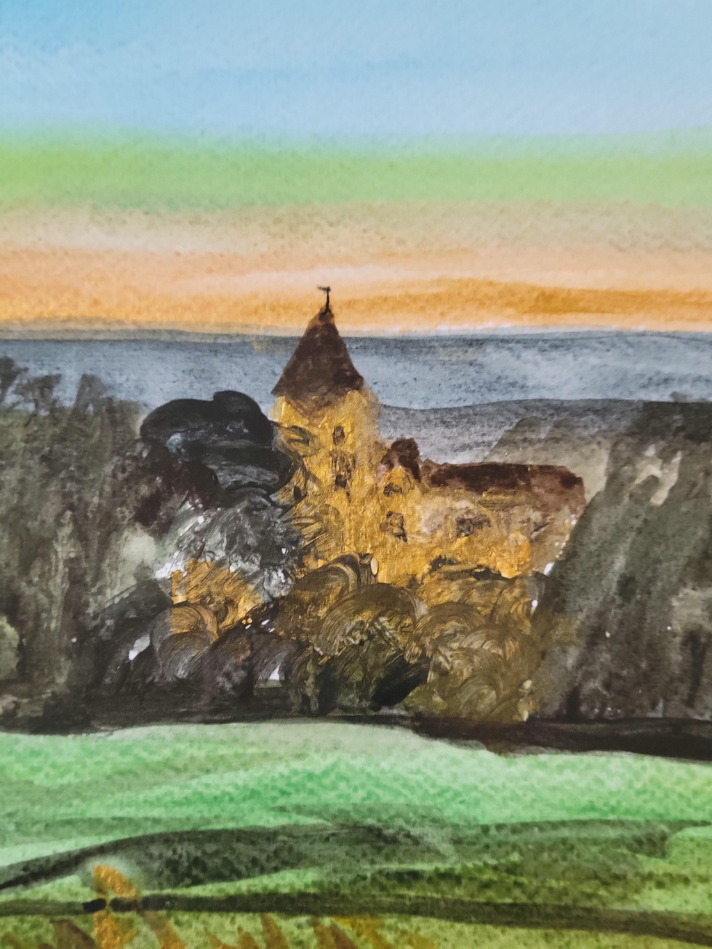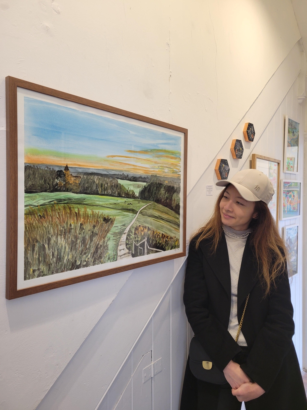 "Slow Stroll down the hill" series is inspired by Miyo's walks on the Richmond hill during sunset hours during Winter. Visitors and locals come often to this beautiful spot for a slow stroll and to marvel at the stunning sunset.